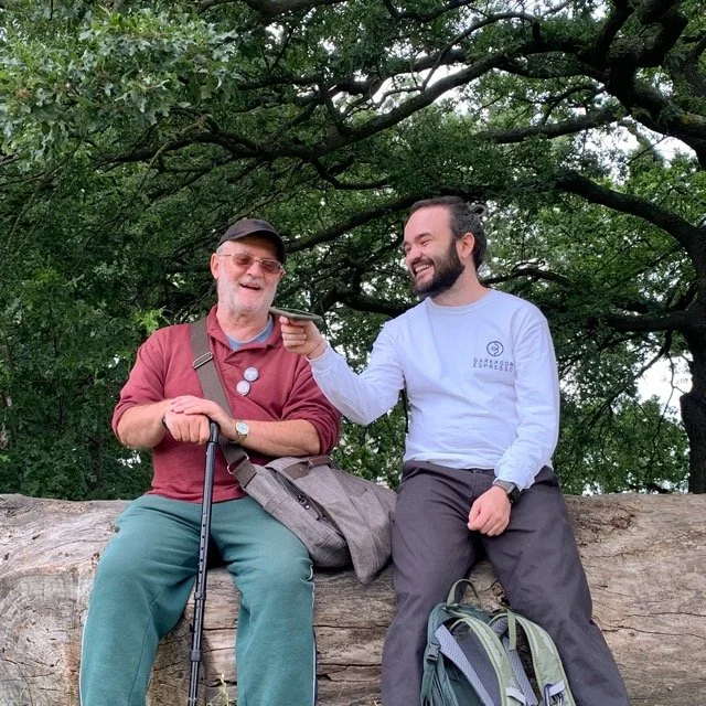 — Ian Townson & William Davy recording the voice-over introduction in Brockwell Park in 2023.