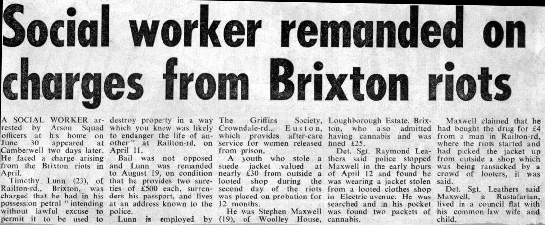 This was in July 1981, three months after the Brixton uprising, when it was still felt to be unsafe to enter the area after further disturbances caused by police raids looking for stolen goods